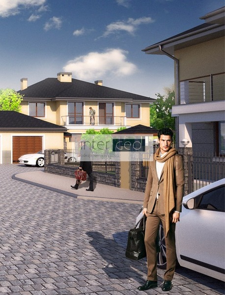 - Wysokość górnej krawędzi elewacji frontowej budynku garażu wynosi do 4 m;